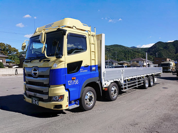 重量物、大型機械類の運搬に適した車両です。エアサスもついており、精密機器の輸送にも最適です。