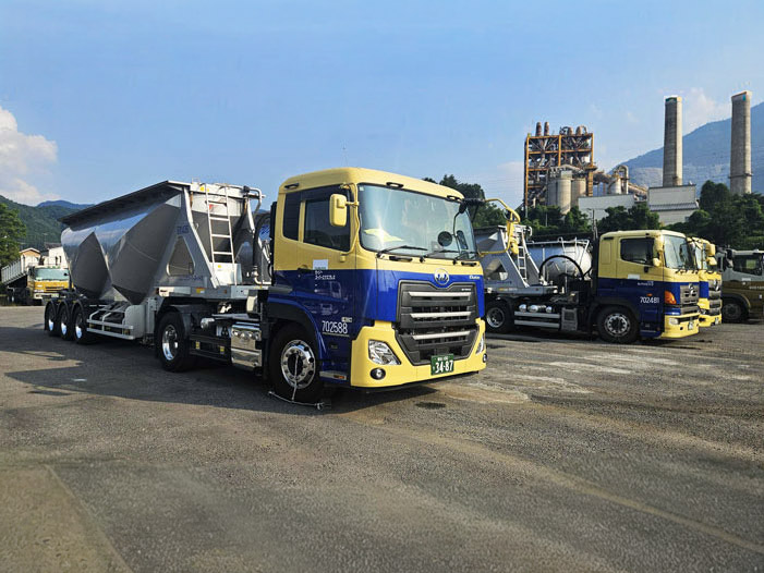 一部営業所において、セメントの原材料などを輸送する「粉粒体運搬車」を保有しています。限られた用途の車両ながら、安定かつ確実な輸送を実現し、建設資材輸送の現場を支えています。